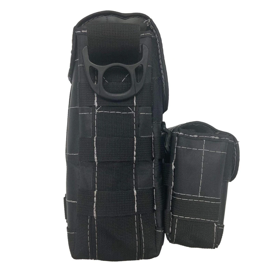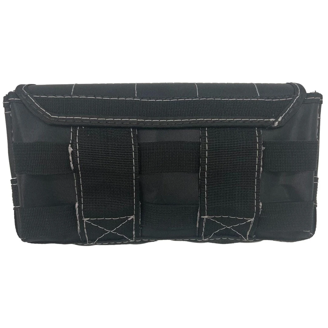 Dark Star bags feature a unique MOLLE attachment system, seen elsewhere in the military & other tactical equipment, which gives quick and easy attachment and removal of accessories and other pieces of gear on the fly. The MOLLE system is a simple and lightweight design that uses a MOLLE “stick” to interlace the webbing of the main bag to the accessory.
