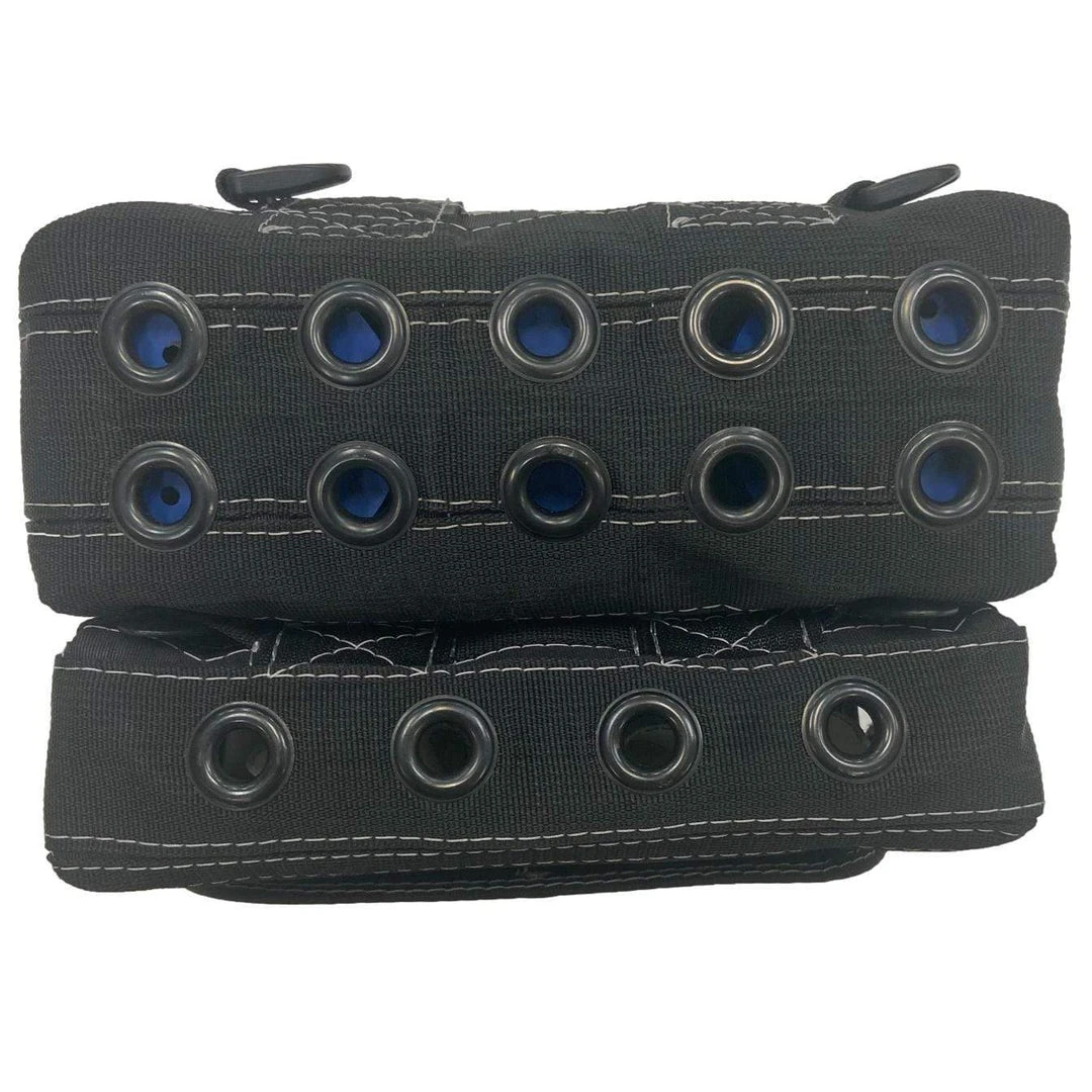This three-tube bag features three 3″ diameter x 8″ tall tubes, several slots for bucktail/tins, and a small storage pocket for leaders and other accessories. The main bag also has MOLLE attachment points on the front and two sides, which gives the user the ability to quickly change out its configuration. The front pouch is attached using the MOLLE system to the main bag, but easily can be removed altogether or ran separately on a 2″ surf belt with its belt loops. Ten 1/2″ sized grommets expel water quickly from the bag, leaving minimal if any water weight after going for a swim.