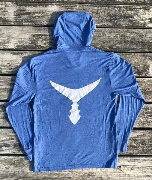 These light weight hoodies are an everyday long sleeve tee with a hood for additional protection from the elements. The tri-blend shirts are crafted with a blend of Polyester, Cotton and Rayon providing a incredibly soft and comfortable feel. These are great for on the water, providing you comfort but still being light enough to feel light in.Â