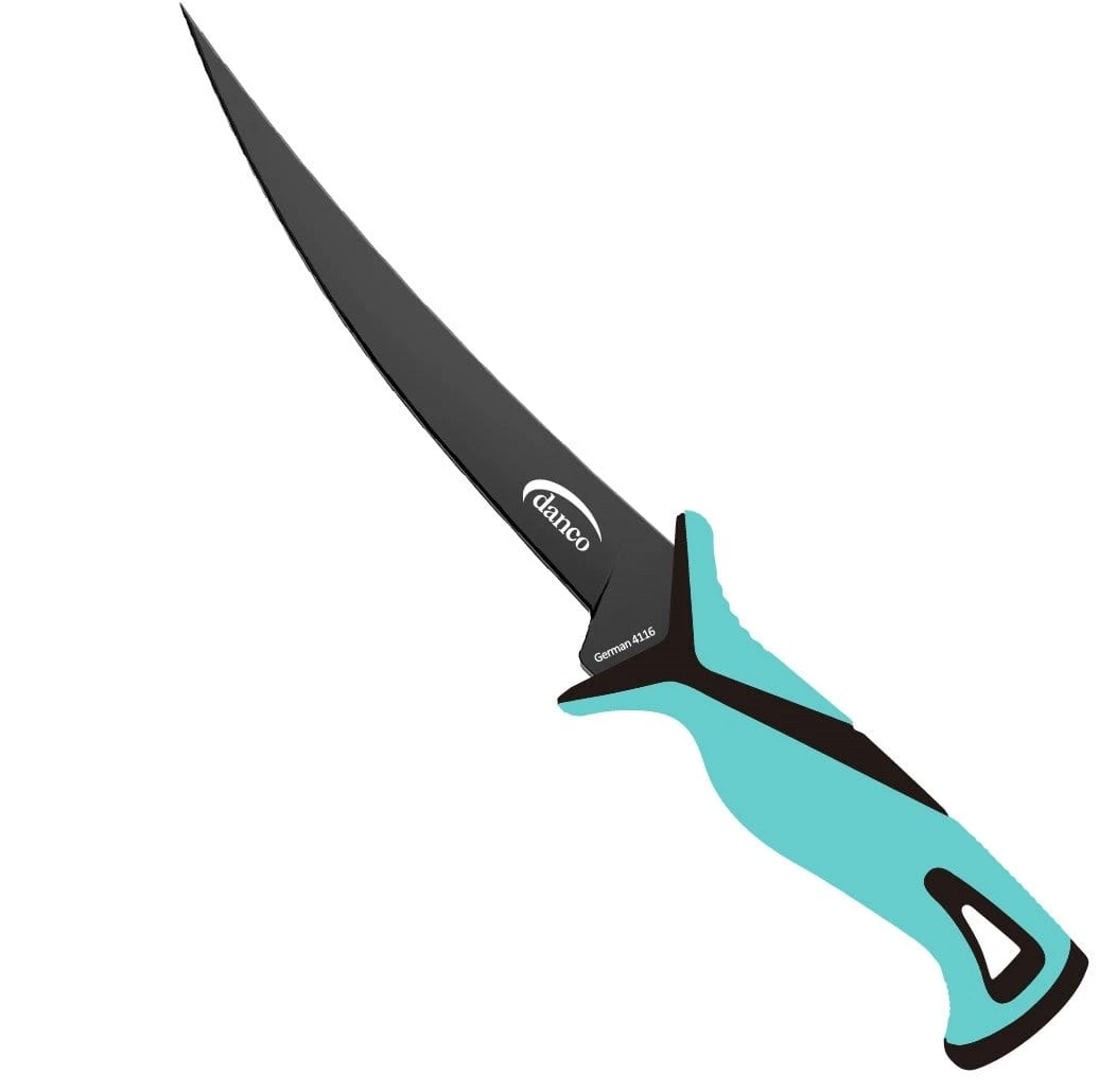 The Danco Pro Series Flex Knives are comfortable and ultrasharp knives available in several sizes. The knives are a full tang design and feature a German 4116 steel blade with Dupont Teflon Coating. An over-sized dual molded handle provides great comfort while the textured finish provides for grip even with the most slippery conditions.