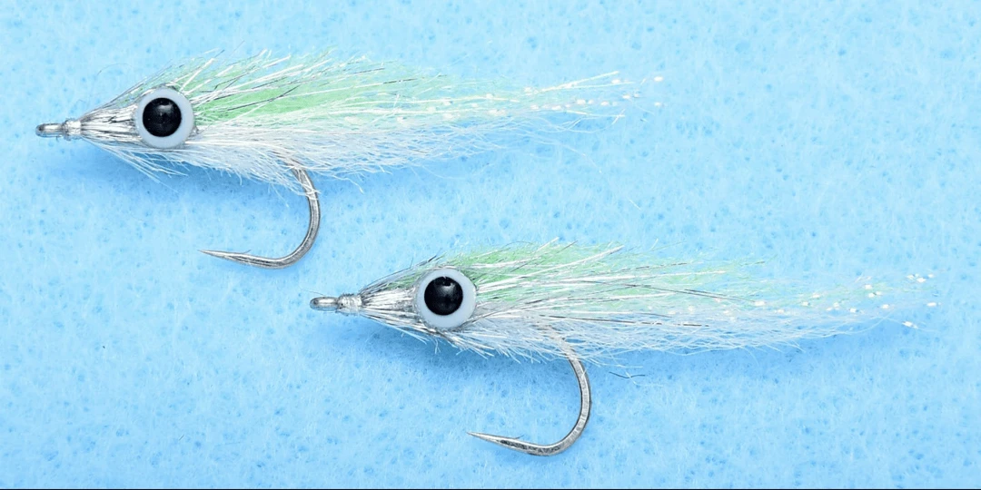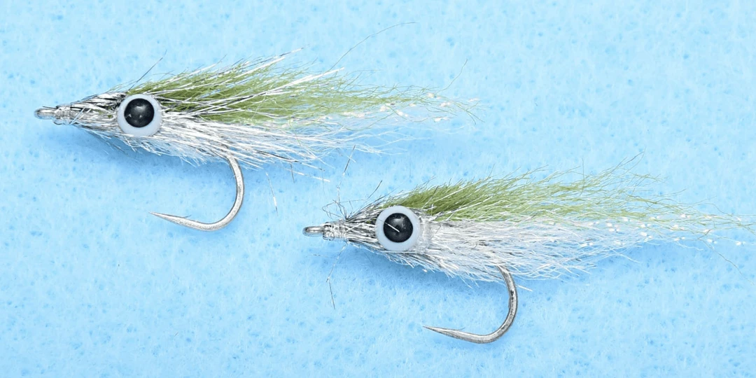 The smallest of the EP baitfish flies. Complete with eyes and a solid #2 Gamakatsu saltwater hook.Â