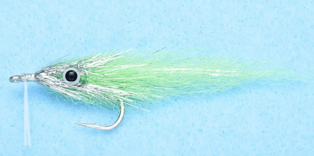 A must have fly for the late summer and early fall fishing when tiny bait accumulates in New England Waters. This fly is 2.5″ long.