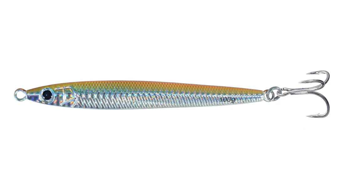 These jigs accurately imitate sand eels and sand lance through their unbeatable finish and coloration. Thru-wired for maximum strength. Rigged with size VMC 4x Treble Hooks.