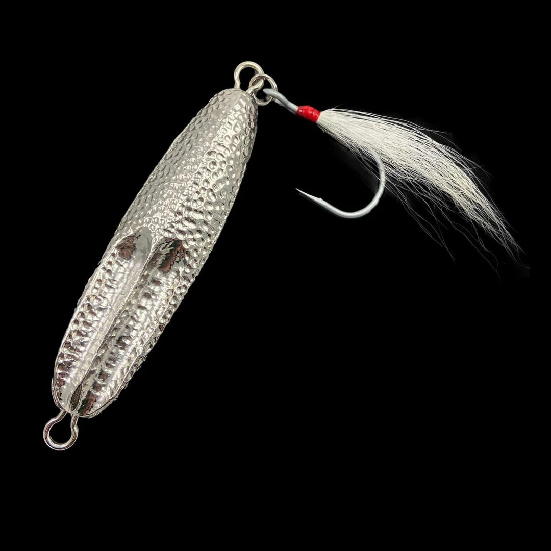 The 4.5oz model comes with a 6/0 VMC Siwash hook tied with white bucktail. All other larger models come with the VMC Tuna Tamer Assist Hook that is attached with 300lb Kevlar cord and a 300lb Owner Solid Ring.