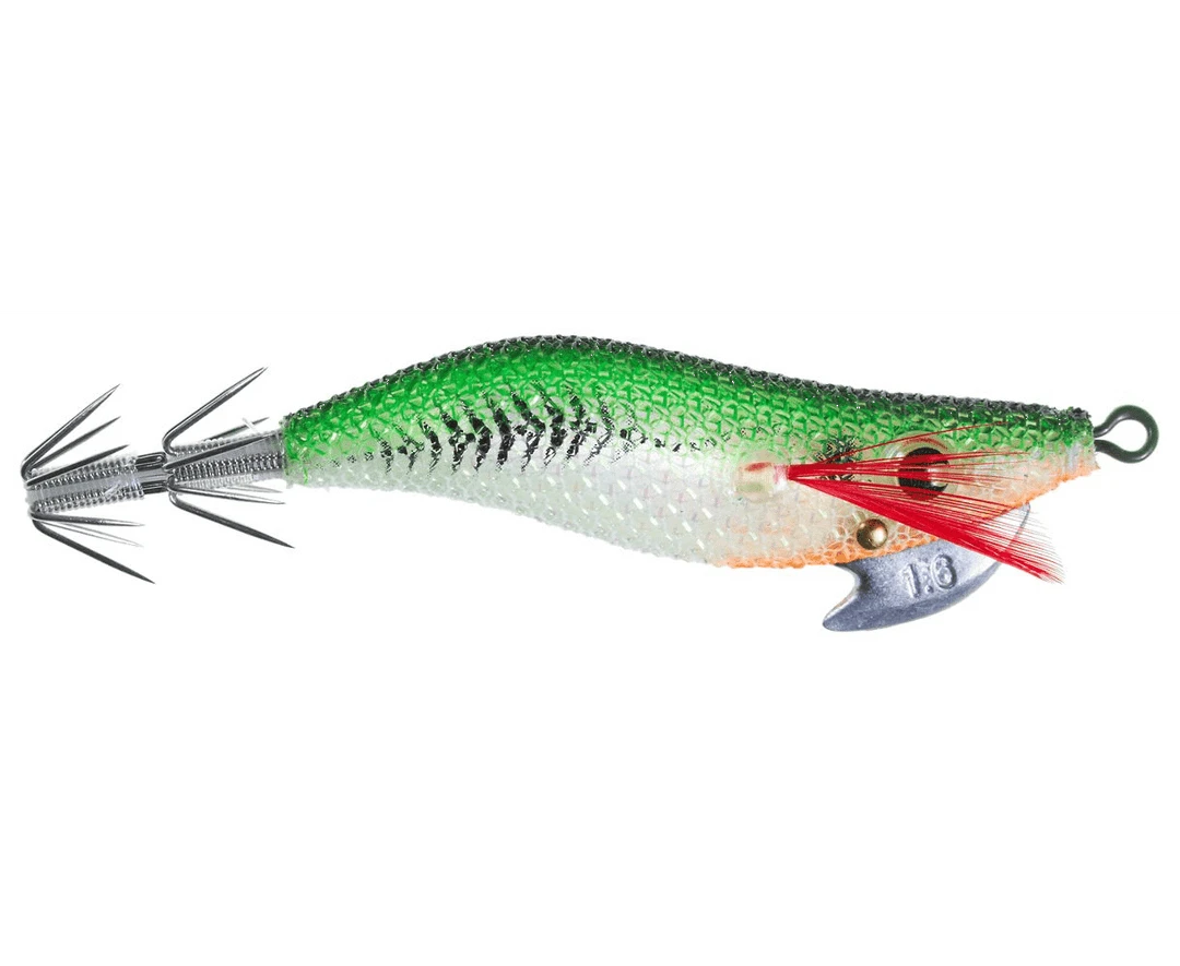 Featuring a cloth finish and natural materials, this squid jig should be fished in multiples to cover the water column. A durable and effective squid-catching product from Yo-Zuri.
