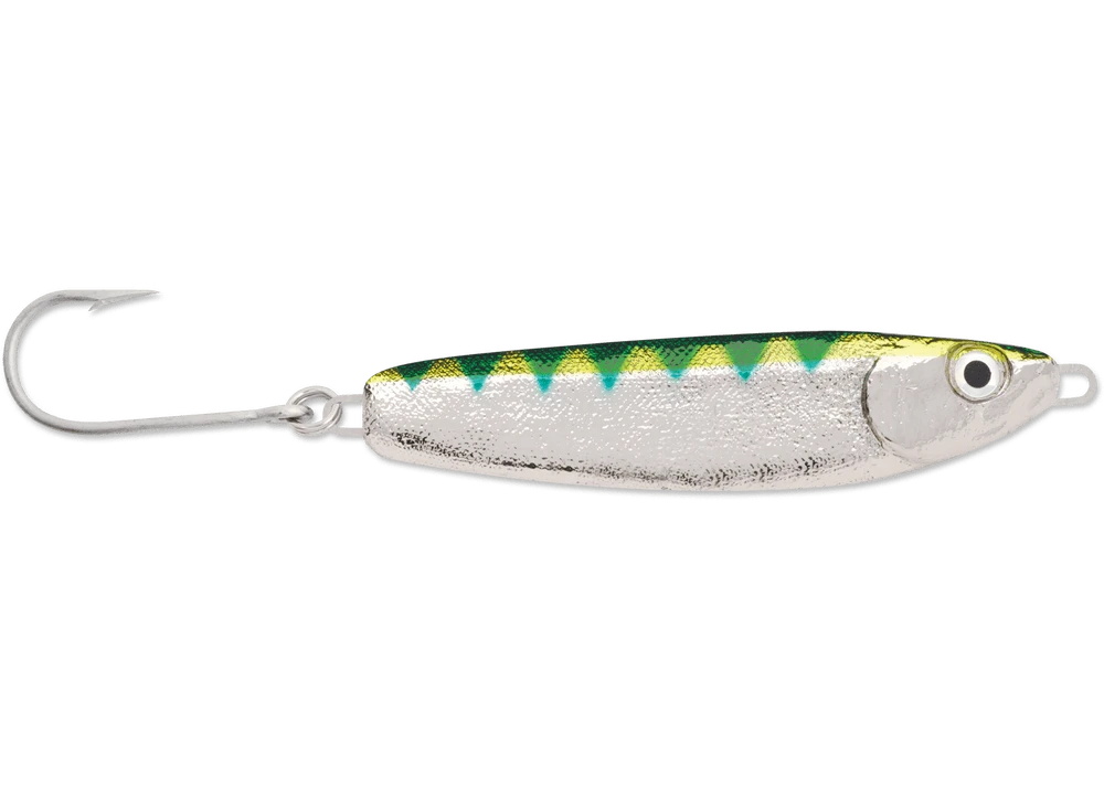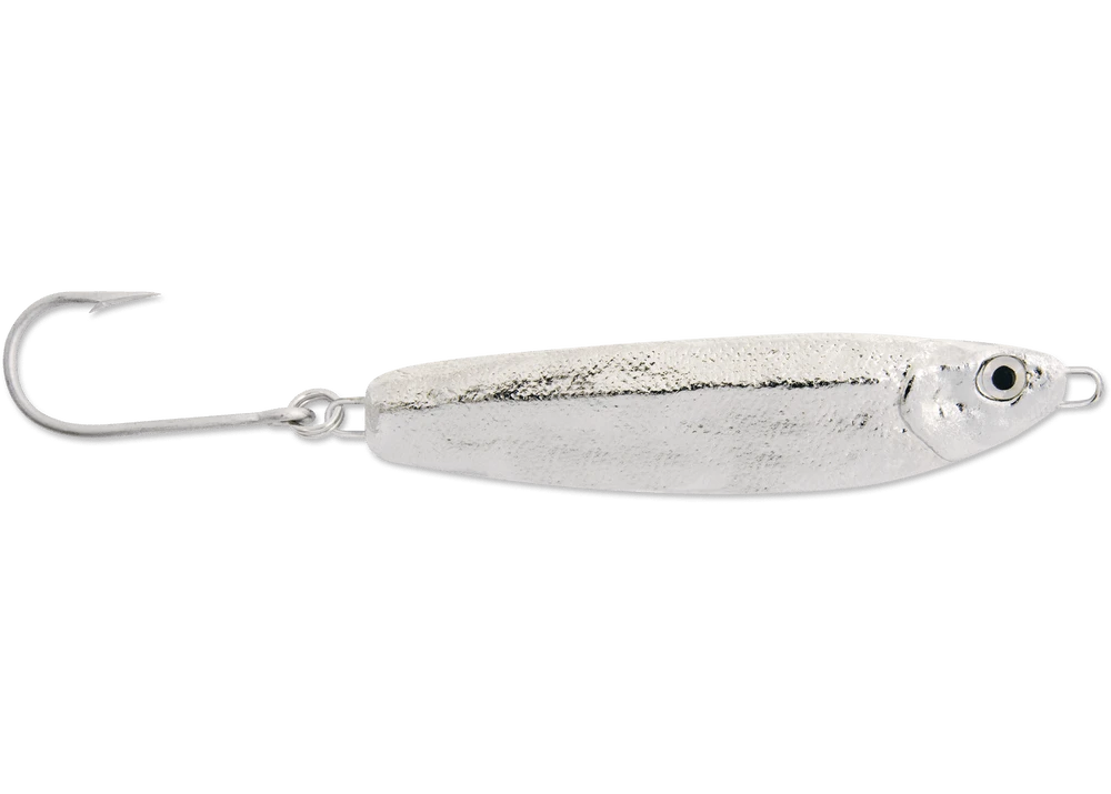 The Crippled Herring from Luhr Jensen is a metal jig known worldwide by fishermen for its use in both fresh and saltwater. It has a little wider body than most metals, mimicking peanut bunker, herring, butterfish and more. It can be cast out and retrieved, jigged on the bottom and trolled. Its action simply draws reaction strikes from predatory fish and is a great bait whether in the surf, boat, kayak and more.