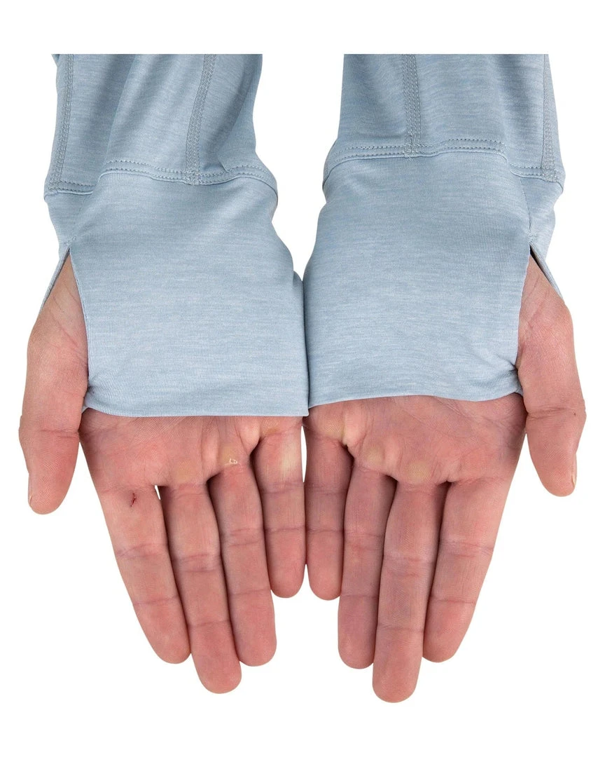- Sleeves built with extended cuff lengths and thumbholes work with you while casting or poling and provide back of hand sun protection