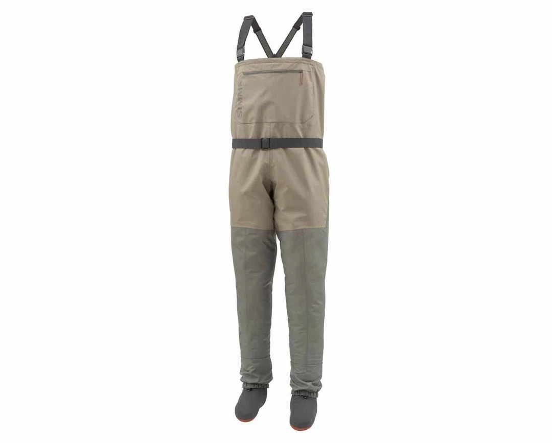 Simms quality and fit below $200! Simms Tributary Stockingfoot Waders are constructed with a four-layer lower section for durability and a three-layer upper for breathability. Docking station, storage pocket, microfleece hand warmers, and gravel guards. Simms durability at a great value.