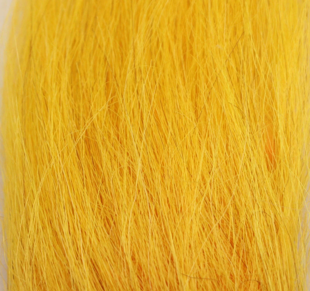 Squimpish hair is a synthetic fly tying material best described as a cross between bucktail and polar bear. The fibers come in a patch like craft fur and lengths ranging from 4”-12”. The listed length is the longest working material. Many examples have “underfur/guard fur”. All examples are tapered in length. As Squimpish hair is a 100% custom product, there is a wide range of volume, length and densities that vary from color to color thus the unit size or “square inch x square inch” is not the same from color to color.