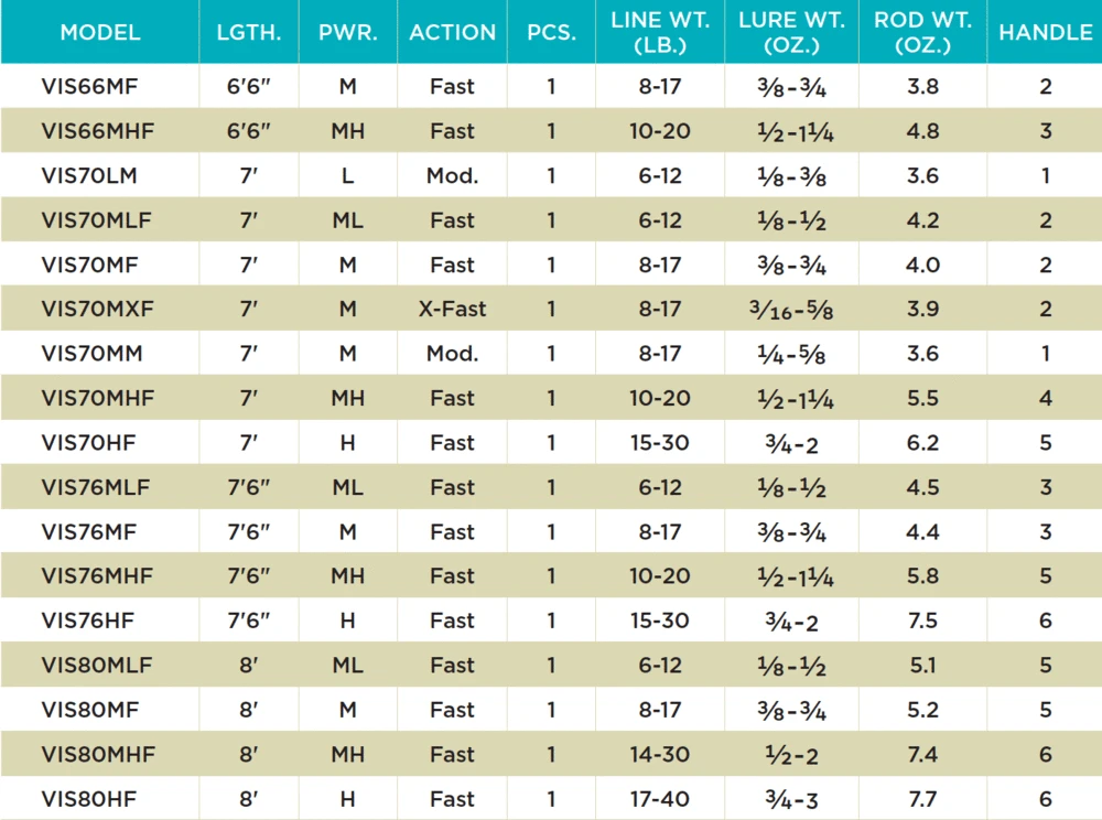 St. Croix Avid inshore models VIS80MF, VIS80MHF, VIS80HF are available for instore pickup only. All other models require an oversize packaging surcharge to safely get your new rod from us to you – but they do qualify for free shipping!