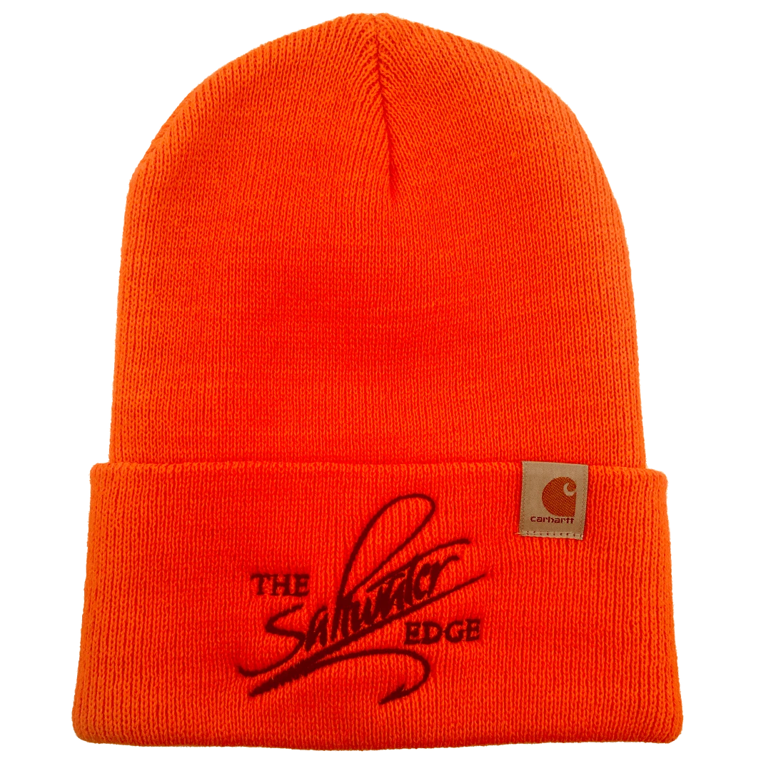 A new, super durable and warm, beanie-style cap from Carhartt, featuring a stitched Saltwater Edge Logo. Stay warm and represent the Edge all winter long in a beanie from a brand we know and trust. Available in three great colors. 100% Acrylic rib knit with a stitched Carhartt logo.