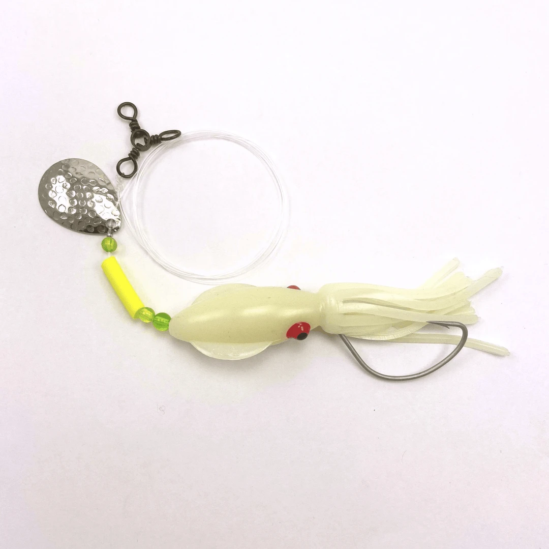 Designed and built by one of Rhode Island’s best fluke fisherman, these are some of the best fluke rigs money can buy. Outfitted with a quality 3-way swivel, squid body, hammered colorado, and 5/0 VMC Kahle styled hook.Â