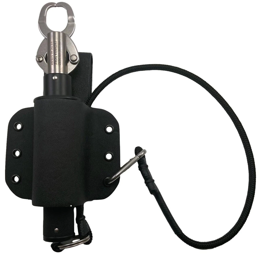 Built specifically for the Estaboga Boga Grip, the Turtle Cove Tackle Boga Carrier keeps one of our favorite tools by our side and ready for use. This carrier is constructed from a material known as Kydex, which is lightweight, durable, scratch-resistant, holds its shape, and provides for very simple maintenance as you can simply wipe it clean. Kydex is often seen being used for sheaths for items such as knives, firearms, and other tools since it can take abuse and doesn’t mar finishes. A 2″ belt loop to accommodate most belts and surf belts. The Turtle Cove Tackle Boga Sheath works with all Estaboga Boga Grips, whether it be the 15lb, 30lb, or 60lb models and can also be used on other boga styled grips. Â